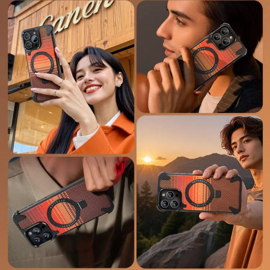 Real Aramid Fiber Cases With Magsafe Rotating Kickstand For iPhones