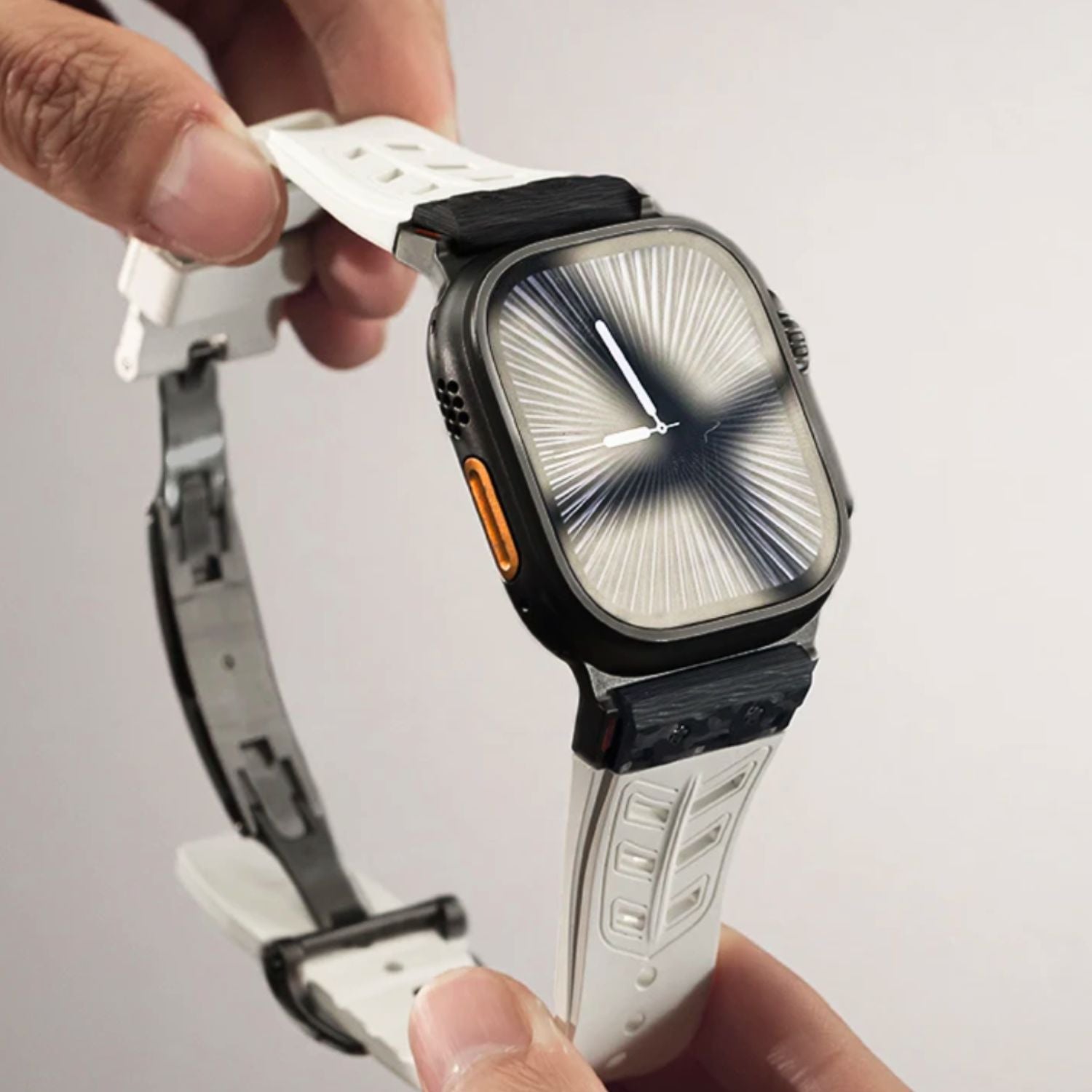Luxury FKM Silicone Strap for Apple Watch – Titanium Buckle Edition