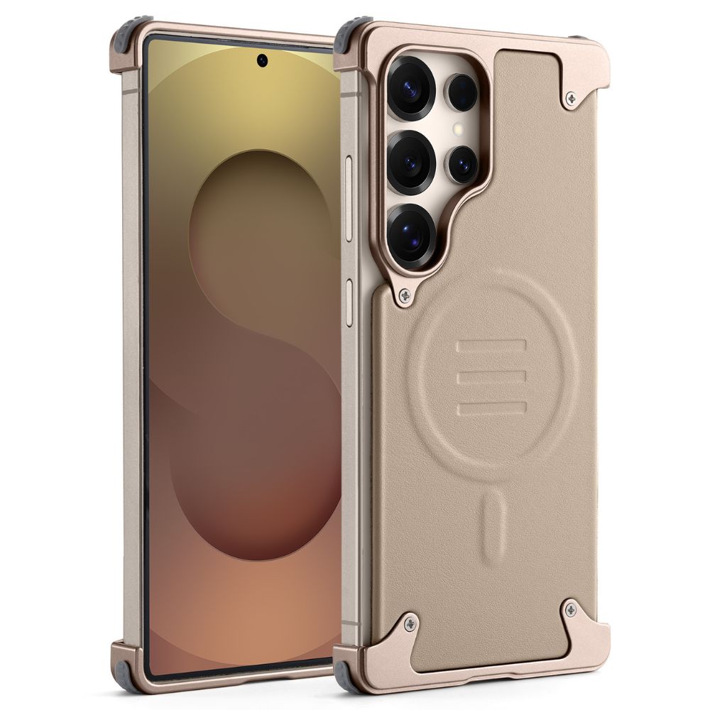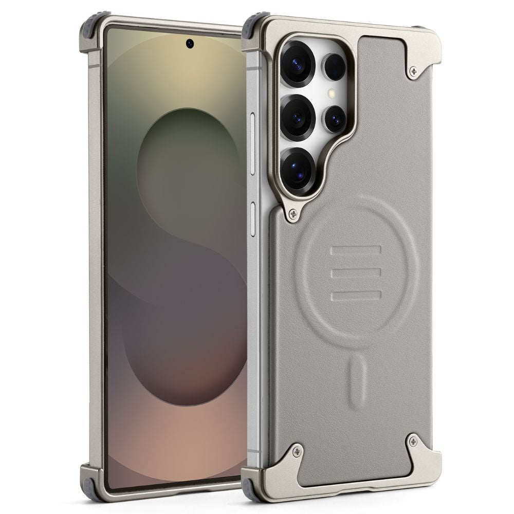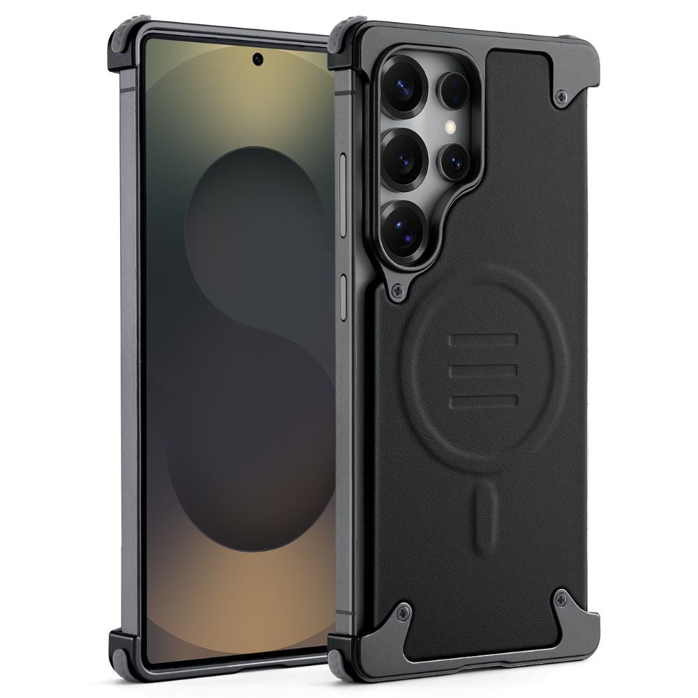Luxury Metal Bumper Leather Case With Magsafe For Samsung